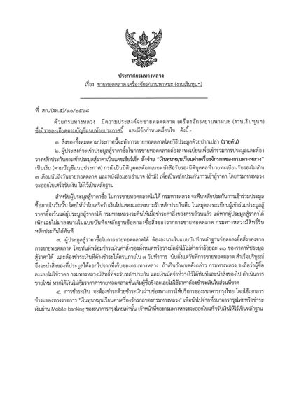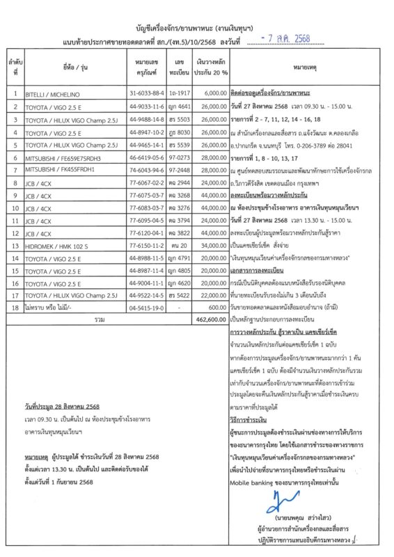 กำหนดการขายทอดตลาดโดยวิธีประมูลสู้ราคาด้วยปากเปล่าในวันที่ ๒๘ สิงหาคม ๒๕๖๘