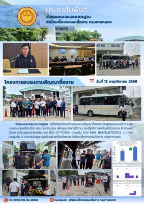ภาพโครงการฝึกอบรมตามสัญญาซื้อขายรถปฏิบัติการเคลื่อนที่เร็วขนาด 6 ล้อแบบมินิบัส พร้อมชุดอุปกรณ์ประกอบ ยี่ห้อ CP FOTON แบบ/รุ่น AUV MINI BUS/BJ6730TD3