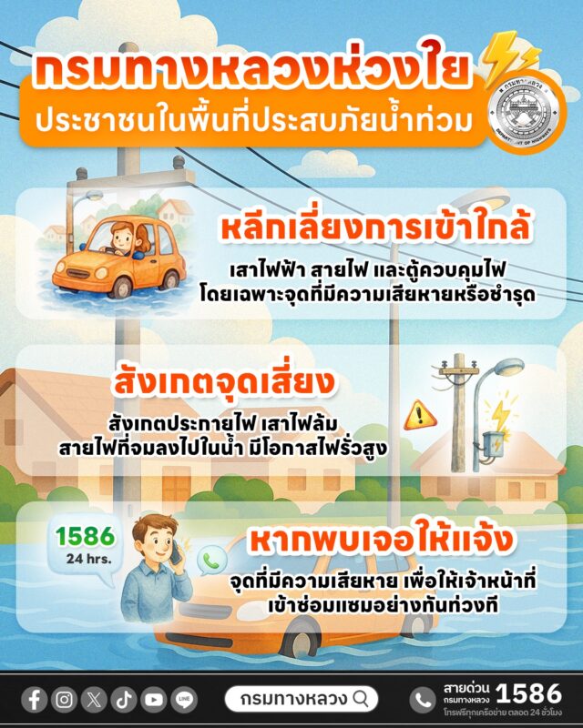 สายด่วน กรมทางหลวง 1586 ตลอด 24 ชั่วโมง